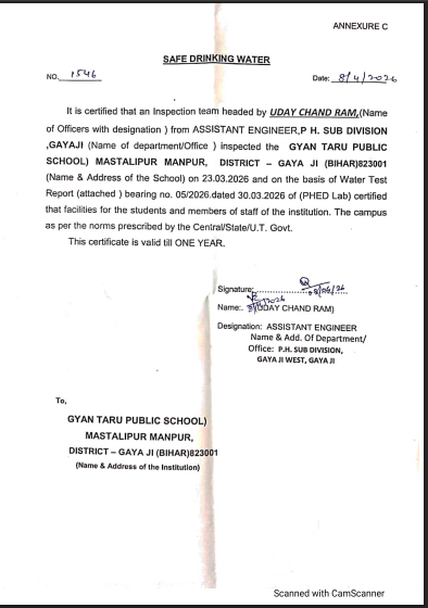 Safe Drinking Water Certificate
